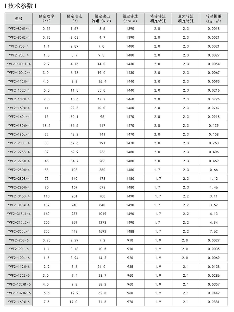 YVF2系列變頻調速三相異步電動機,提高了防護等級和絕緣等級,降低了噪聲,其電機結構更加合理,外形新穎美觀、安裝尺寸及功率等級符合IEC標準,外殼防護等級為IP54。電動機的定額是以連續(xù)工作制(S1)為基準的連續(xù)定額,額定電壓為380V,F(xiàn)級絕緣,額定頻率為50HZ。本系列電動機采用了獨立的冷卻結構,采用軸流風機強迫通風冷卻,確保電機在低速恒轉矩下長期運行時溫升不超過允許值。